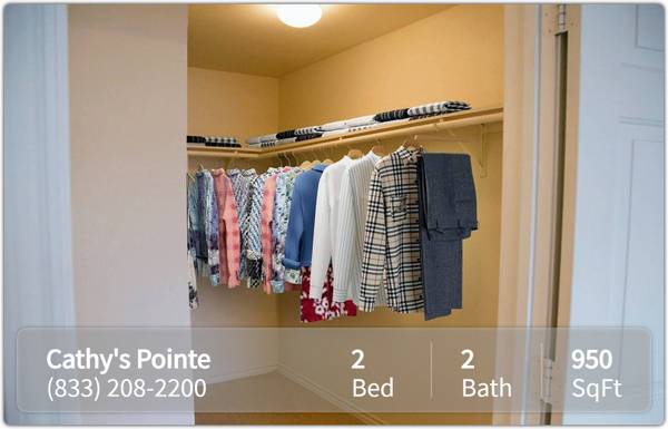 Description: Offering a variety of spacious 1, 2 & 3 bedroom apartment homes, we're the expert at combining quality and comfort, making Cathy's Pointe an ideal place to call home. It's our pleasure to provide the everyday comforts and benefits that allow our residents to turn their apartments truly into homes. Look no further, your new home is waiting for you!