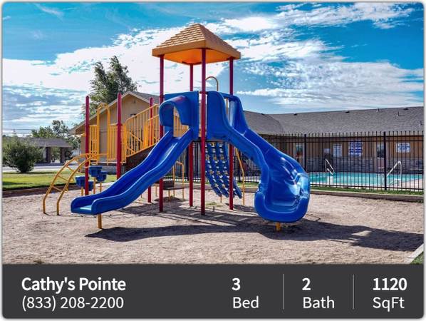 Description........ Cathy's Pointe Apartments in Amarillo, Texas offers spacious 1, 2 and 3 bedroom apartment homes at an affordable price. Enjoy relaxing in our gazebo, going for a run at the fitness center or playing a game on the basketball court. Our rental community also features two playgrounds, an outdoor pool, a community room and more. We are in close proximity to anything you could want or need in Amarillo. Homes at Cathy's Pointe offer great amenities including a kitchen pantry, dishwasher, huge closets, washer/dryer connections and central air conditioning. Call to schedule a personal tour of your new apartment home today!