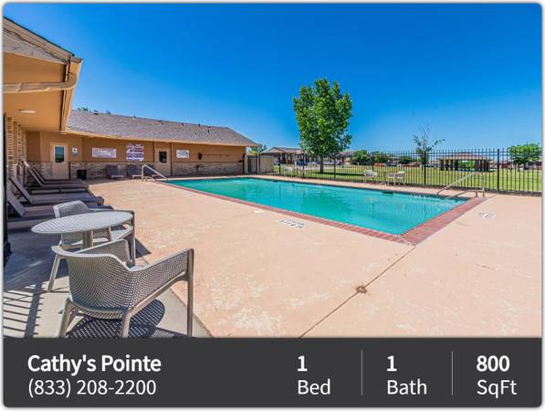 About the community: Cathy's Pointe Apartments in Amarillo, Texas offers spacious 1, 2 and 3 bedroom apartment homes at an affordable price. Enjoy relaxing in our gazebo, going for a run at the fitness center or playing a game on the basketball court. Our rental community also features two playgrounds, an outdoor pool, a community room and more. We are in close proximity to anything you could want or need in Amarillo. Homes at Cathy's Pointe offer great amenities including a kitchen pantry, dishwasher, huge closets, washer/dryer connections and central air conditioning. Call to schedule a personal tour of your new apartment home today!