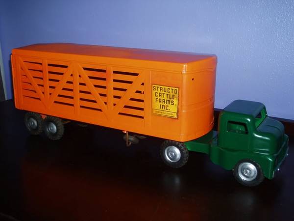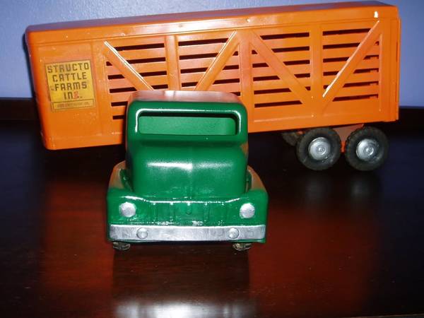 This STRUCTO cattle hauling semi with trailer is in HIGHLY COLLECTIBLE shape and our price is based on an appraisal. The doors open and close just fine and she rolls fine also.