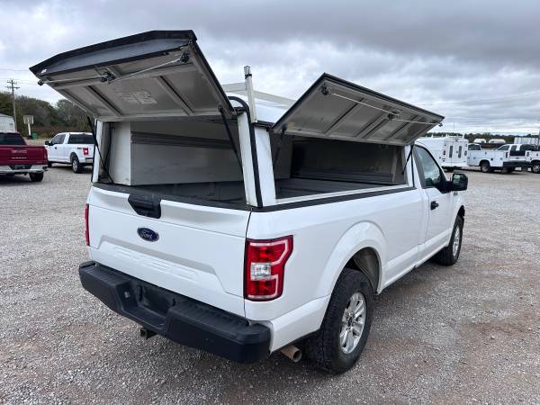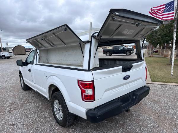 2019 FORD F150 REGULAR CAB LONGBED, 5.0L GAS V8 AND RWD, POWER WINDOWS AND LOCKS, CRUISE, BLUETOOTH, BACK UP CAMERA, TOW PACKAGE, HAS XLT ALLOY WHEELS AND NEW PIRELLI TIRES, A.R.E. CAMPER SHELL WITH WORK TRAY, VERY CLEAN AND RUNS GREAT HAS 85K MILES