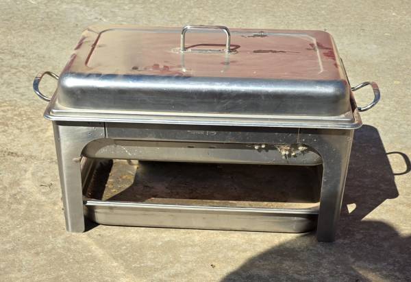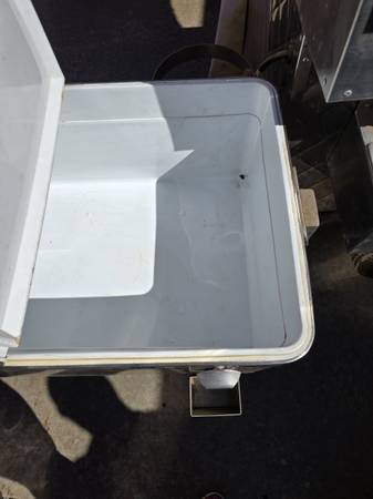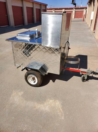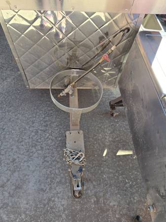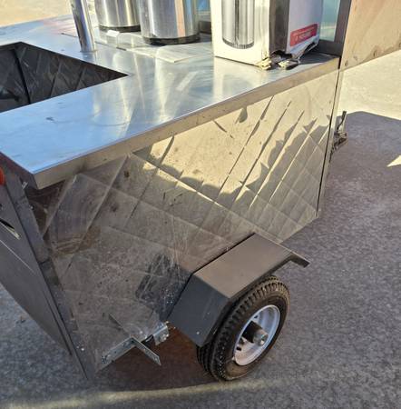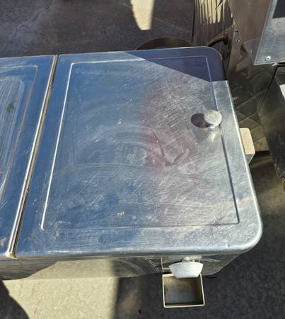 2005 hotdog cart used a few a times. Includes everything pictured. The cooler is discolored on one lid. Everything is dirty due to being in storage but it will be cleaned before purchase. The bins that go over the burner are included, I didn't realize they weren't in place when I took pictures. I do have a certificate of origin for it.