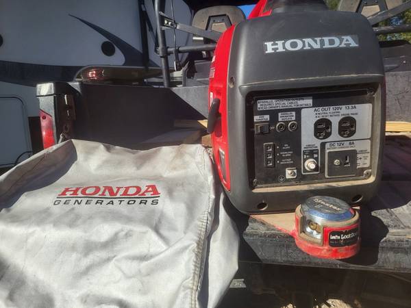 I have 2 (two) Honda EU2000I Generators for sell ($1200 apiece on Amazon). They are in excellent running condition, start after 2 maybe 4 pulls. They are close to 3 years old and have approximately 24 hours on them if that much. I have a parallel wiring system ($185) to pair them for 4000 watts of power, enough to run my 5th wheel completely. I have a 6 gallon gas tank ($50) they draw from so I don't have to refill them in the dead of night. I have them hooked up to a locking system ($400) attached to a platform on the back of my trailer. There's comfort in knowing they will still be there in the morning or when I get back from town. I also have covers ($100) for them. All-in-all a pretty good deal when all is said and done. If you are into boondocking or just want to have power during a brown- out, these are for you. I will consider any reasonable offer as long as it's close to my asking price. This is a CASH DEAL ONLY so don't offer me a cashiers or personal check. Don't ask me to ship them to you, you will have to come pick them up.