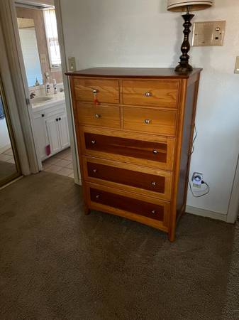 Queen size bed room suite. bed with head board, Dresser with mirror, chest of drawers and nightstand. $500.00 OBO