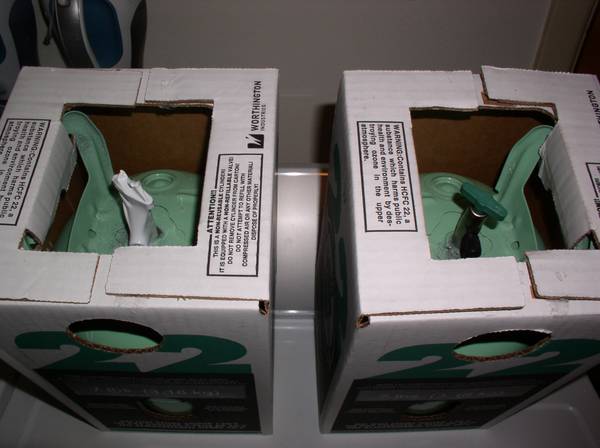 (2) New R22 refrigerant cylinders- 11lbs total net product, one 7lb canister sealed and untapped, one 7lb canister tapped and has 4lbs+ net remaining (3lbs used). Selling at $50/pound of refrigerant- 7lb untapped cylinder $350, 4lb tapped cylinder $200. Discount for both cylinders at $500. Date stamped 7-15-24, produced in USA by Worthington Industries, Ohio. Keep those old residential R22 A/C units running with this great deal on genuine Chlorodifluoromethane (HCFC-22) R22 refrigerant. Contact via Craigslist email system.