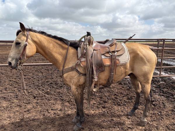 Registered 7 year old buckskin gelding. I’ve used him to doctor yearlings, ride pens, gather pastures, and ship. Ready to find a new place to work. Asking $5500 obo call or text