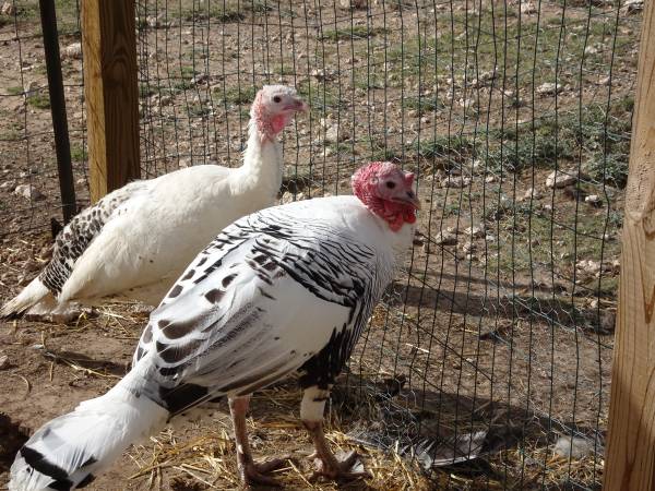 Four month old poults. Sold as straight run although I have seen all 4 strut already so they might all be toms. Royal palm is a heritage breed so they will take 18 to 24 months to get to full size and even birds this size will fly. Price is $30 each. Cash only. Must have a medium dog cage or crate for each 2 birds to take them home. Please call or text Regina at show contact info