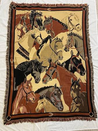 Goodwin Weavers Triple Woven Afghan "Horse Crazy" design 48" x 68" 100% cotton Made in the USA Made during the 1980-1990's time period. Brand New and never opened