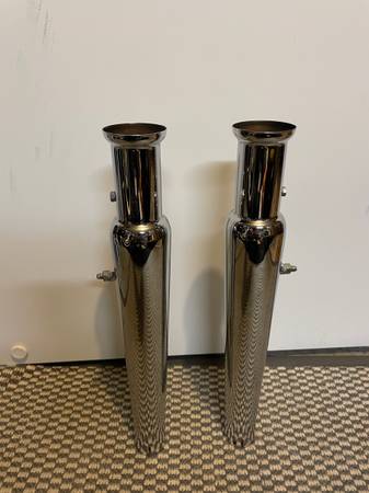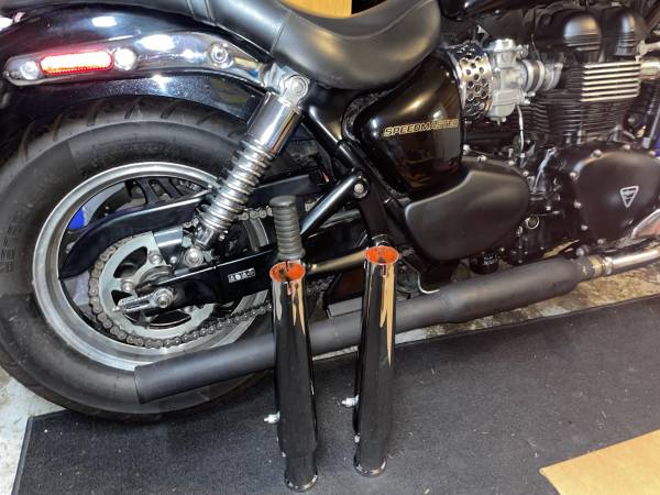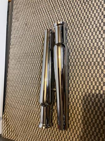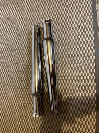 Two chrome bobber style pipes, came off of a Triumph Speedmaster. Very good shape with small scratches. 1 3/4” ID x19” long Baffles are in but pretty loud. $50 obo, cash only PU or meet.