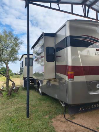 Beautiful Tiffin Allegro Bay Motor Home, Chevrolet Workhorse Gas Motor, 7000 Onan Generator, 2 AC units, Electric Awnings, Auto self leveling, washer/ dryer combo, large slide in the living area, slide in the bedroom, new electric refrigerator and wood cabinets! New recliner love seat and electric fireplace. All of original paperwork, bed spread and decorative pillows.