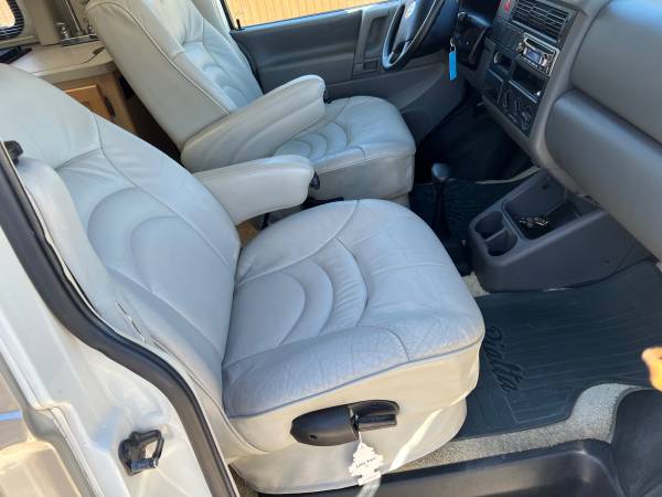 It has 2 bench seats with a foldaway dining table. The bench seats fold down into a bed. This model also has a desk and swivel chair.