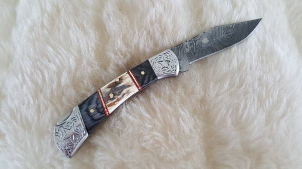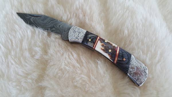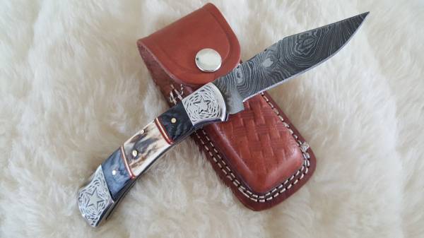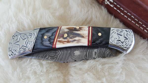 NEW LONESTAR+STAG DAMASCUS POCKET KNIFE WITH SHEATH - $85 (HUNTSVILLE, AL)