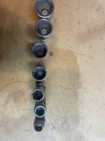 3/8” drive Mac swivel sockets 7 total 3/4”, 11/16”, 5/8”, 9/16”, 1/2”, 7/16” SK 3/8” Call or. Text ….