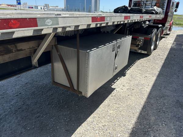 22.5 tires. all aluminum wheels, one 4 ft. tool box located in the center of the trailer. No bent rub rails. Good wood for nail strips. Good brakes. Air ride. Located at Area Trailer Sales and Rentals in Amarillo Texas